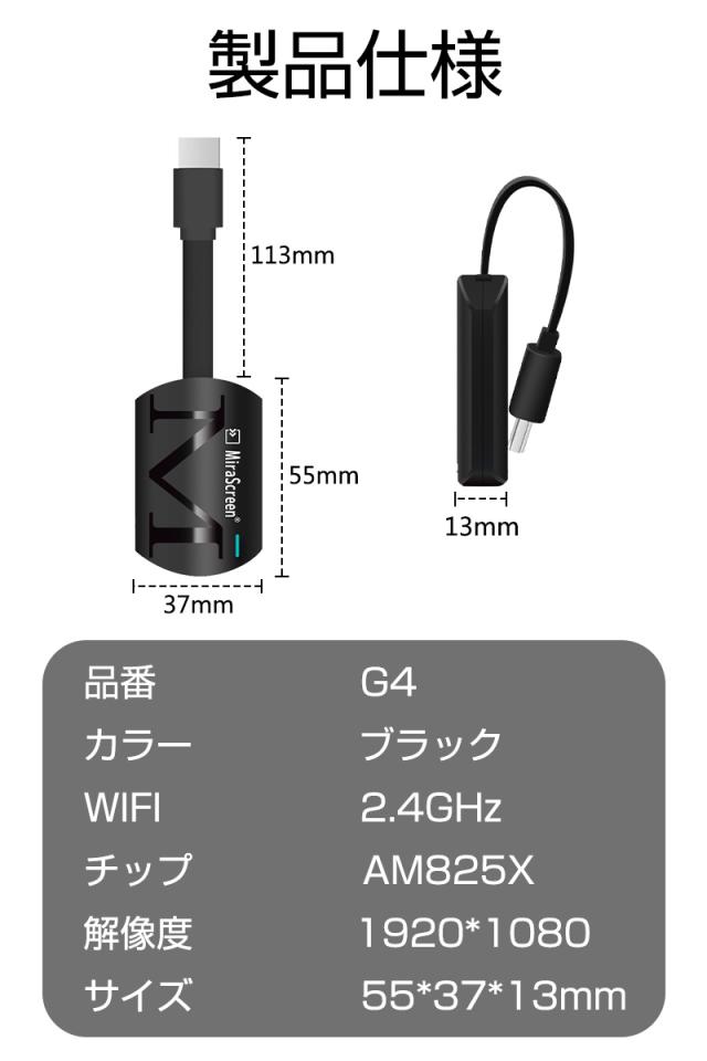【パッケージ内容】ワイヤレスミラーリング、ケーブル、日本語取扱説明書