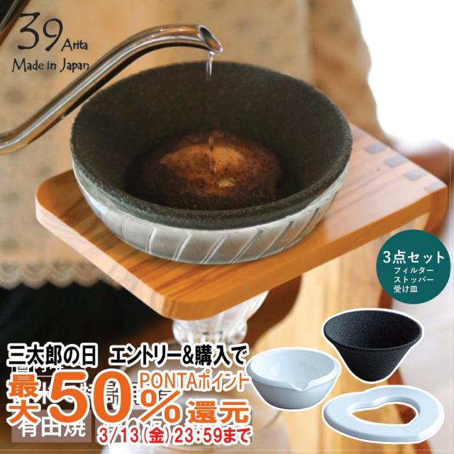 【三太郎の日 最大50%還元】コーヒードリッパー 39arita セラフィルター 3点セット [有田焼 陶器製 珈琲 セラミック ハンドドリップ][OTS][送料無料](6044850)