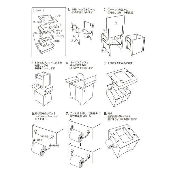和式トイレの上を覆うように設置できるプラスチック製ダンボールの組立便器。