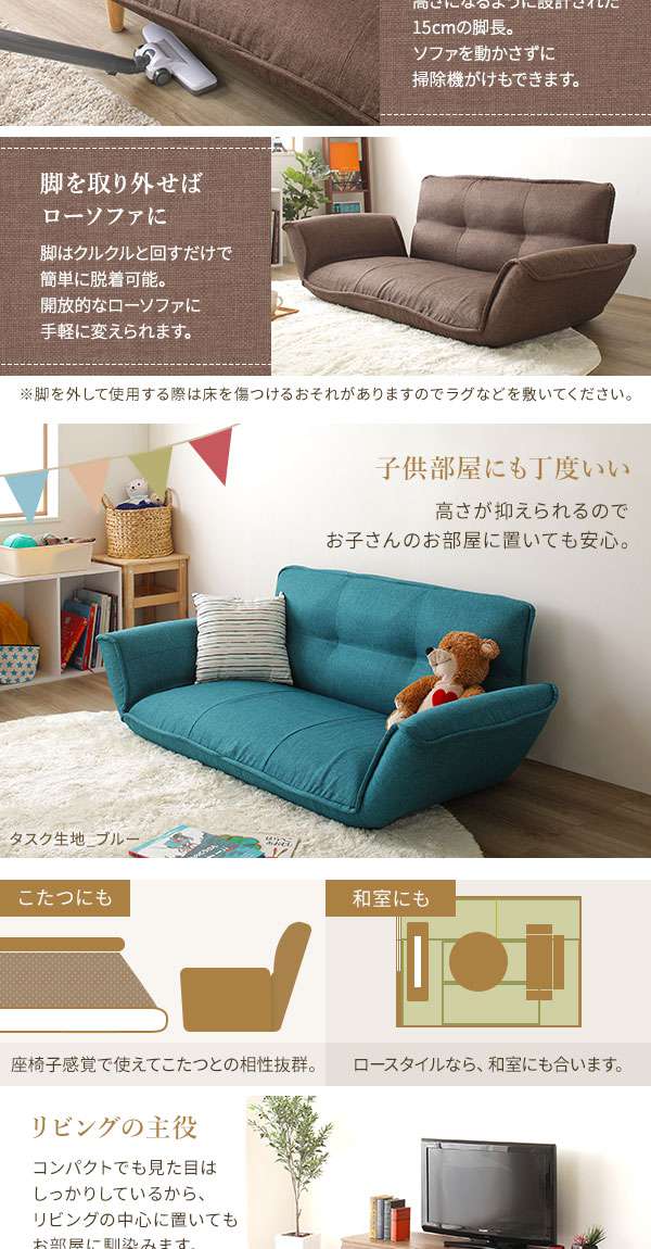 ・脚を外せばローソファにもなります。より圧迫感の少ないお部屋にしたいときに最適です。
