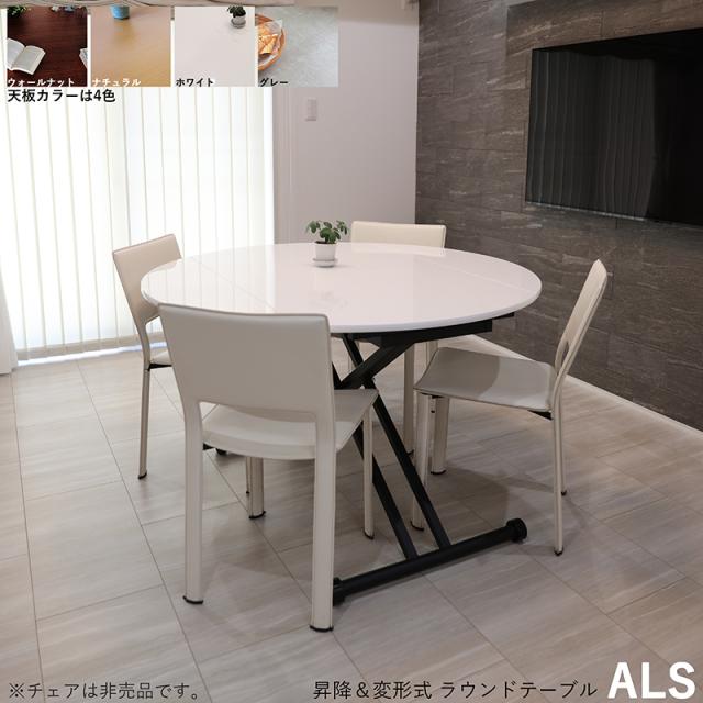 ALS-SST 昇降式 変形式ダイニングテーブル ホワイト色/ブラウン色/グレー色/ナチュラル色 約幅120×奥行72〜120×高さ38〜78cm 昇降式 丸形 食卓テーブル 円卓。天板 折りたたみ式