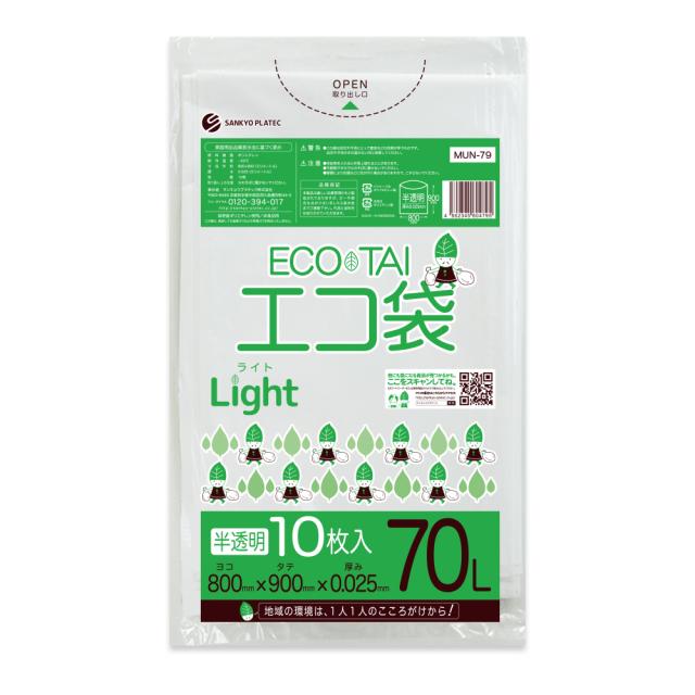 【バラ販売】MUN-79bara ポリ袋 70リットル 0.025mm厚 半透明 10枚 / ゴミ袋 ごみ袋