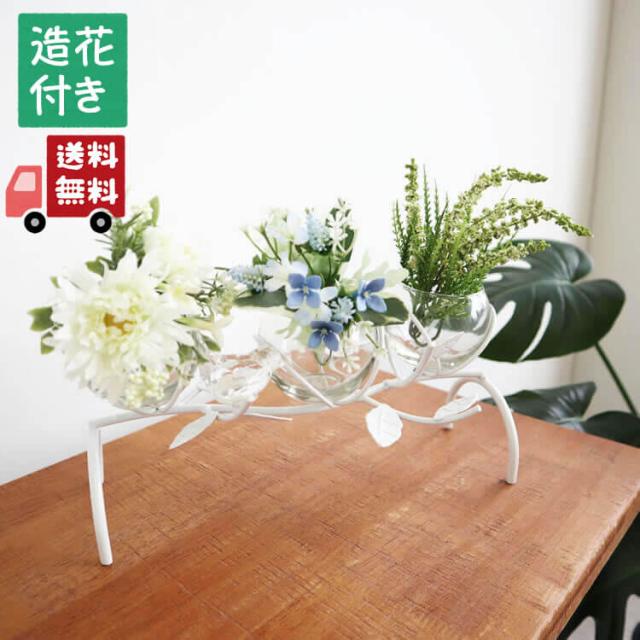 ギフトラッピング無料 雑貨 おしゃれ 玄関 花器 アレンジメント 可愛い フラワーベース 造花 アイアン 雑貨 鳥 リビング インテリア ホワイト ラッピング ギフト お誕生日 3ガラスカップ 贈り物