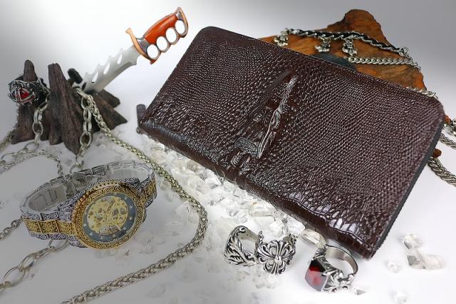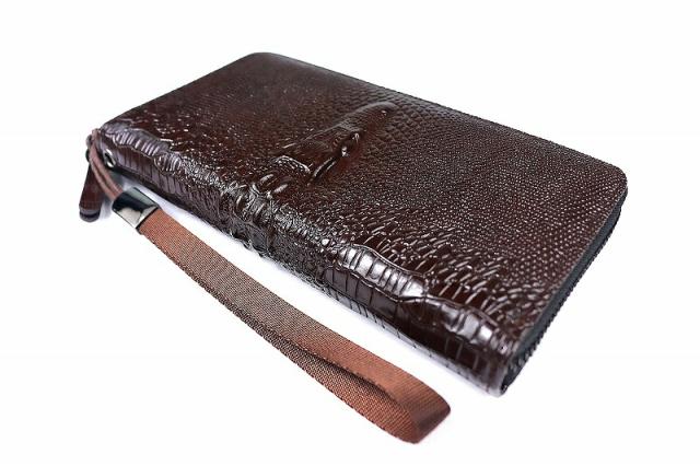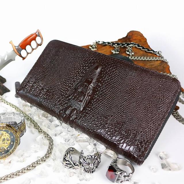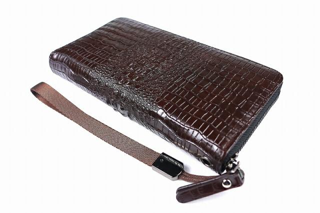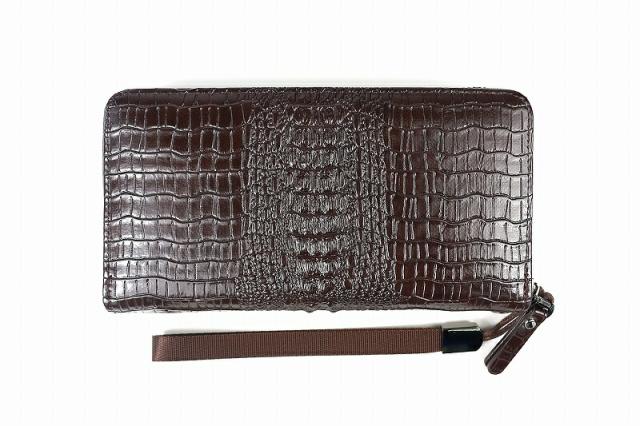 037 茶 激レア クロコヘッド ラウンドファスナー 長財布 ストラップ付き メンズ サイフ ファッション おしゃれ ワニ革 合成皮革 ヤクザ オラオラ系 ヤンキー チンピラ 悪党の店 バースジャパン BIRTHJAPAN
