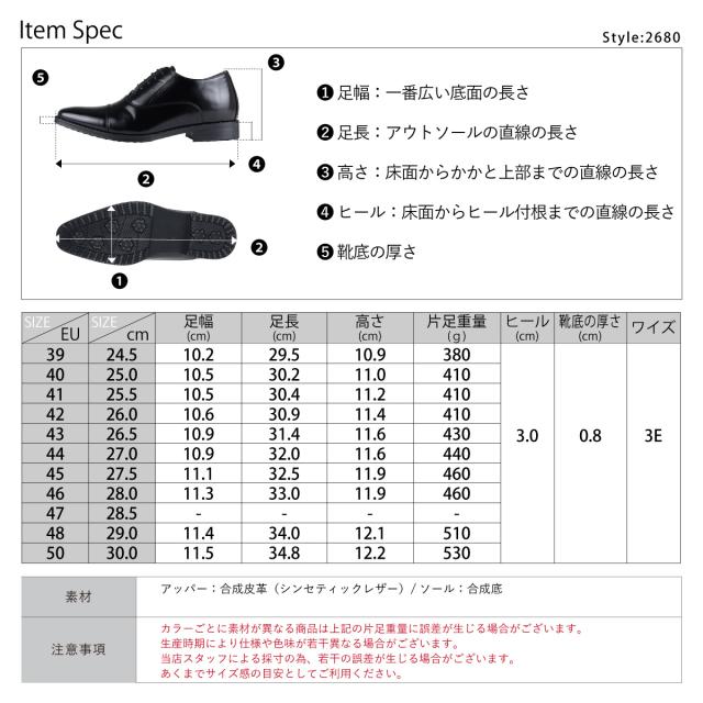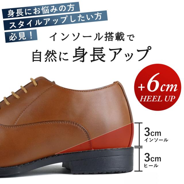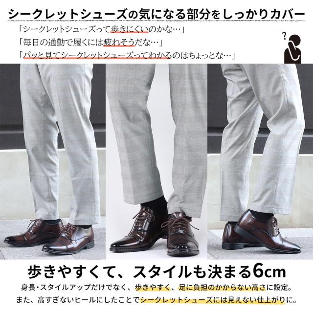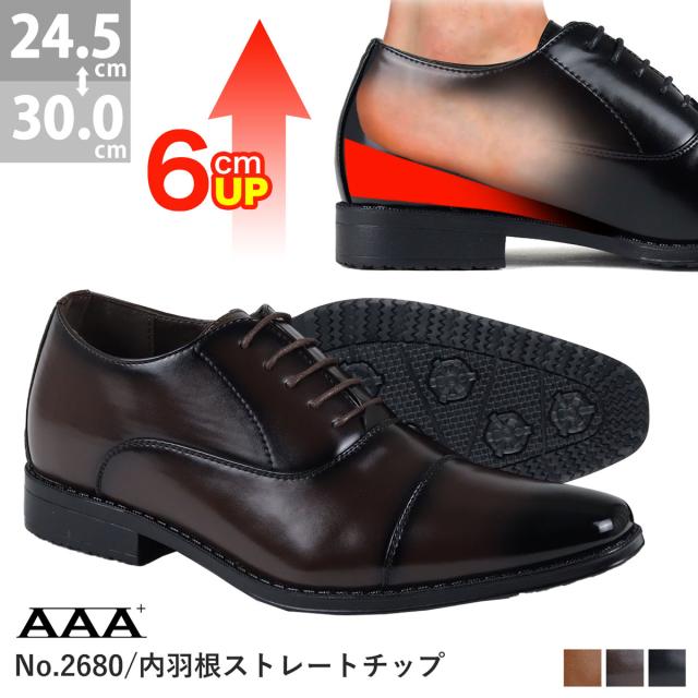 シークレットシューズ メンズ ビジネス 6cm身長アップ 脚長 革靴 内羽根 防滑 レースアップ 大きいサイズ No.2680 24.5-29cm 30cm キングサイズ 小さいサイズ 黒 ブラック AAA+ サンエープラス ビジネスシューズ 3cmヒール ストレートチップ 268