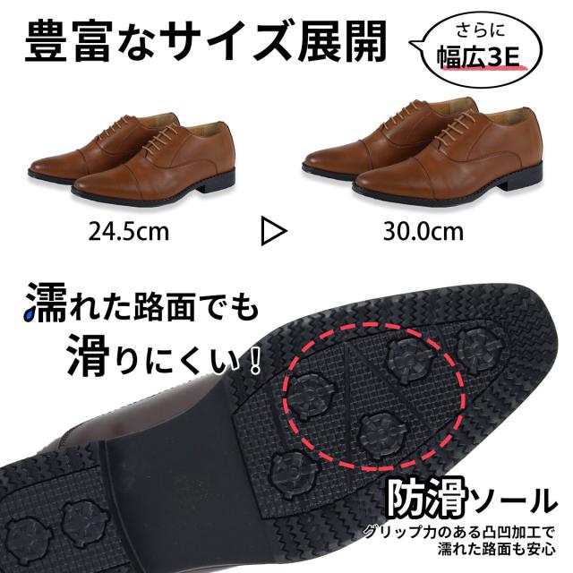 グリップ力のあるソールで濡れた路面も滑りにくい防滑仕様や、ゆったりと履ける幅広3E仕様などビジネスマンにとってうれしい機能も詰まっています。
