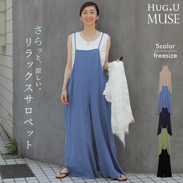オールインワン レディース サロペット 大人MUSE 体型カバー シンプル ナチュラルカラー 大きいサイズ フリーサイズ サロペ コンビネゾン つなぎ ワイドパンツ ワイド パンツ ボトムス 冬 秋 秋新作
