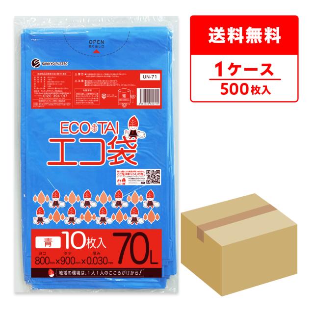 UN-71 ポリ袋 70リットル 0.030mm厚 青 10枚x50冊 / ゴミ袋 ごみ袋 送料無料