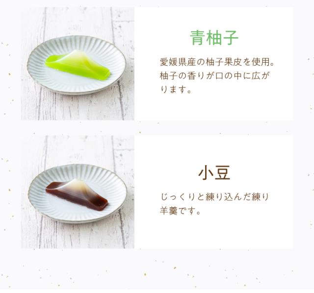 春吉富士の箱の中には色とりどりの6種類の羊羹が入っていて、見た目にもかわいく、手土産や敬老の日の贈り物にもおすすめです♪