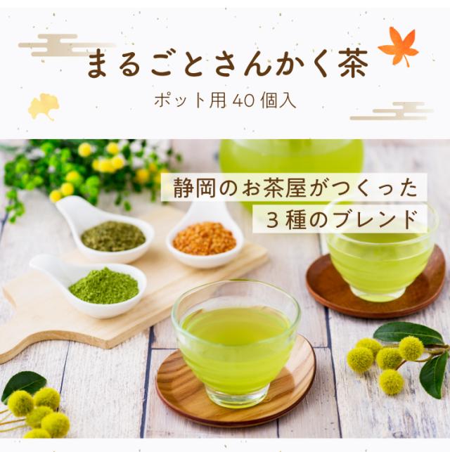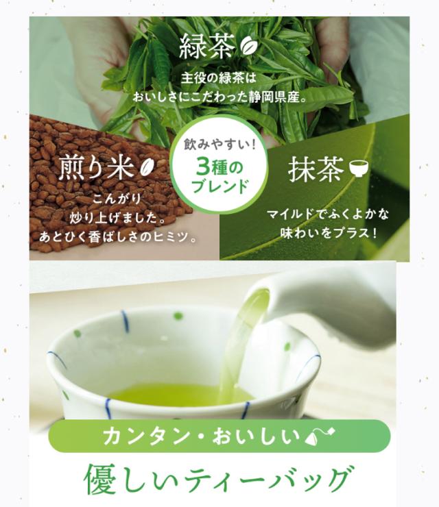 「緑茶」「煎り米」「抹茶」をブレンドしたマイルドなまるごとさんかく茶とのセットです。