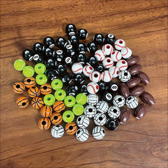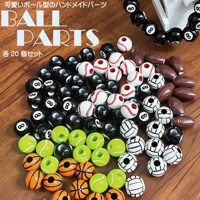 【メール便対応】ボール型パーツ 20個セット 7種類 ハンドメイド スポーツ【野球ボール バスケットボール テニスボール バレーボール ラグビーボール 8ボール サッカーボール オリジナル アクセサリー デコ パーツ BALL】┃