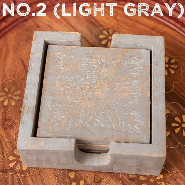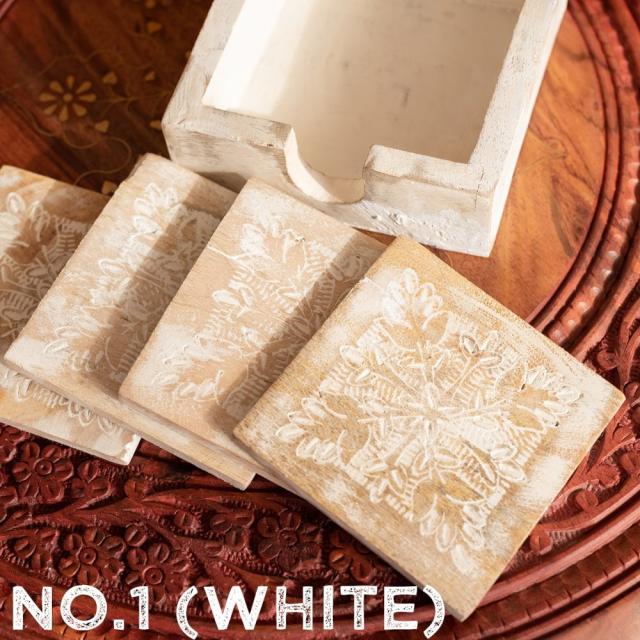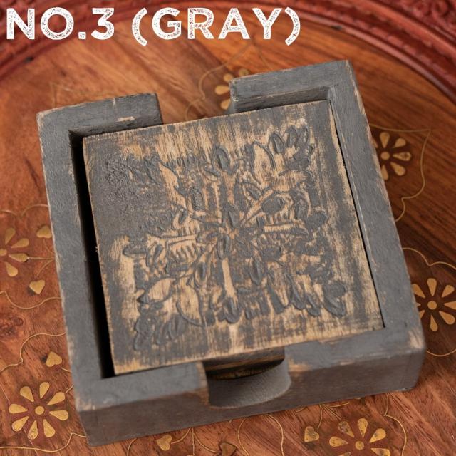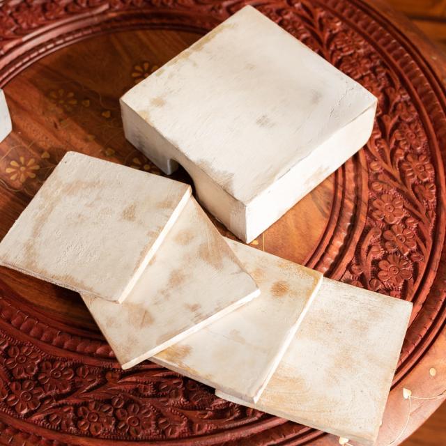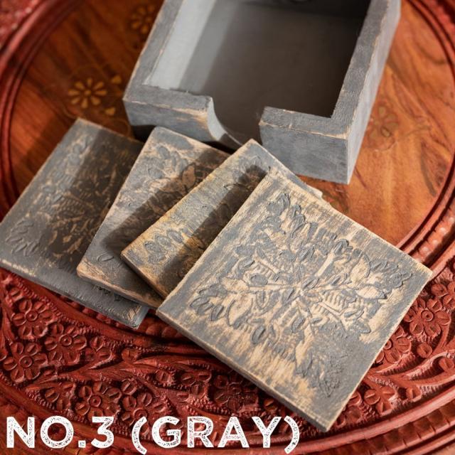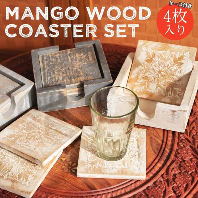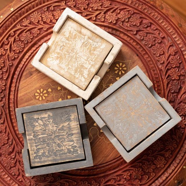 〔4枚入り〕マンゴーウッドの更紗模様付き アンティーク調コースターセット / コップ カップ チャイカップ 木製 グラス ラッシー マグカップ コーヒー インド アジアン食品 エスニック食材