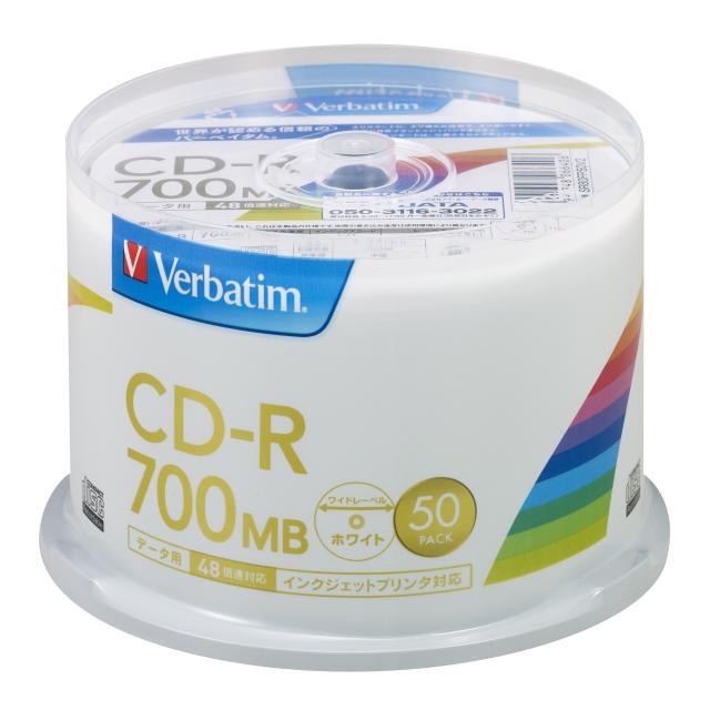 バーベイタム SR80FP50V2 データ用48倍速対応CD-R 50枚パック 700MB ホワイトプリンタブル[SR80FP50V2] 返品種別A