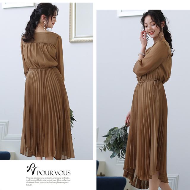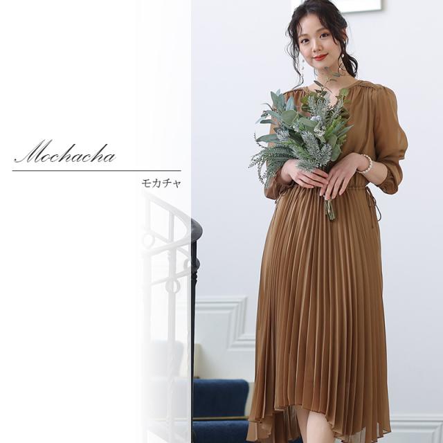 アシメヘムプリーツシフォンドレス 【706211725】 20代・30代・40代・54代長袖・膝丈・セットアップ・スカート・体型カバー・ジャケット・テーラード・スーツ・大きいサイズなど・即日発送・送料無料結婚式・婚活・披露宴・顔合わせ・二次会・同窓会・お呼ばれ・食事会・謝恩会・親族・七五三・お宮参り・冠婚葬祭・弔事・女子会・デート・入学式・卒業式・入園式・卒園式・ママ・マタニティー・セレモニー・セレブ・パーティー