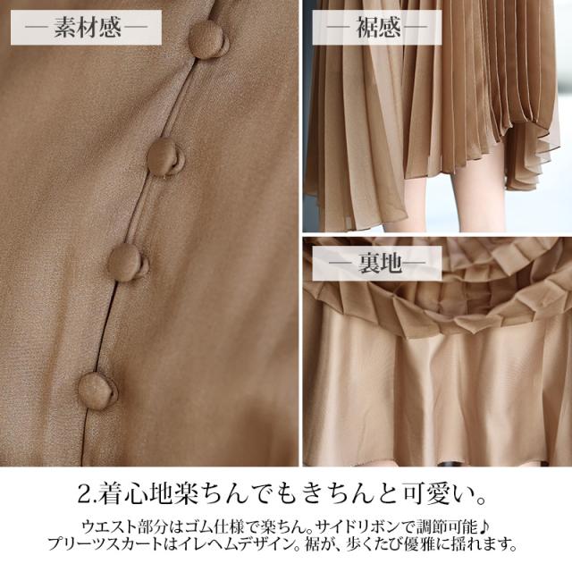 プリーツスカートはイレヘムデザイン。裾が、歩くたび優雅に揺れます。