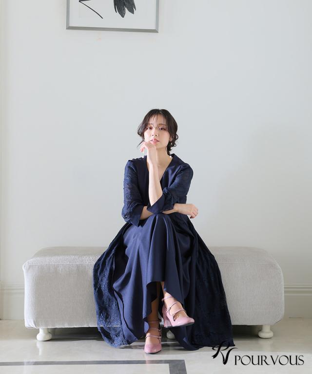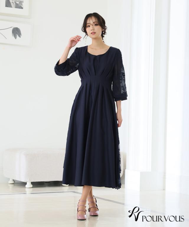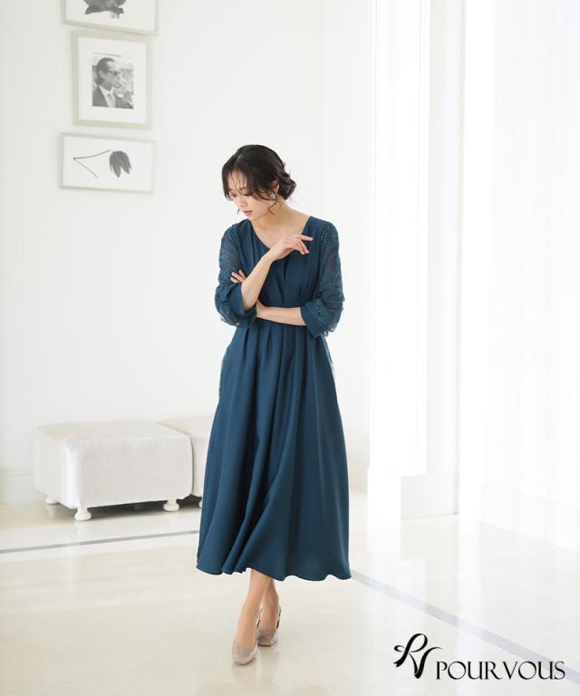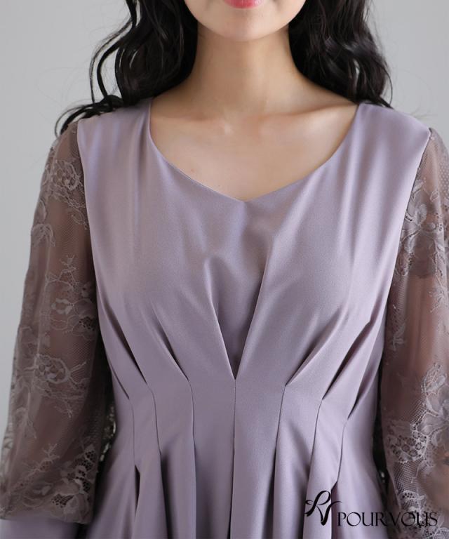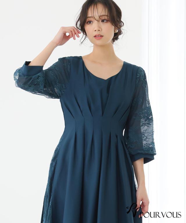 ウエストタックレース切り替えドレス 【708211914】 20代・30代・40代・54代長袖・膝丈・セットアップ・スカート・体型カバー・ジャケット・テーラード・スーツ・大きいサイズなど・即日発送・送料無料結婚式・婚活・披露宴・顔合わせ・二次会・同窓会・お呼ばれ・食事会・謝恩会・親族・七五三・お宮参り・冠婚葬祭・弔事・女子会・デート・入学式・卒業式・入園式・卒園式・ママ・マタニティー・セレモニー・セレブ・パーティー