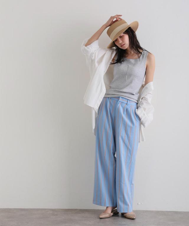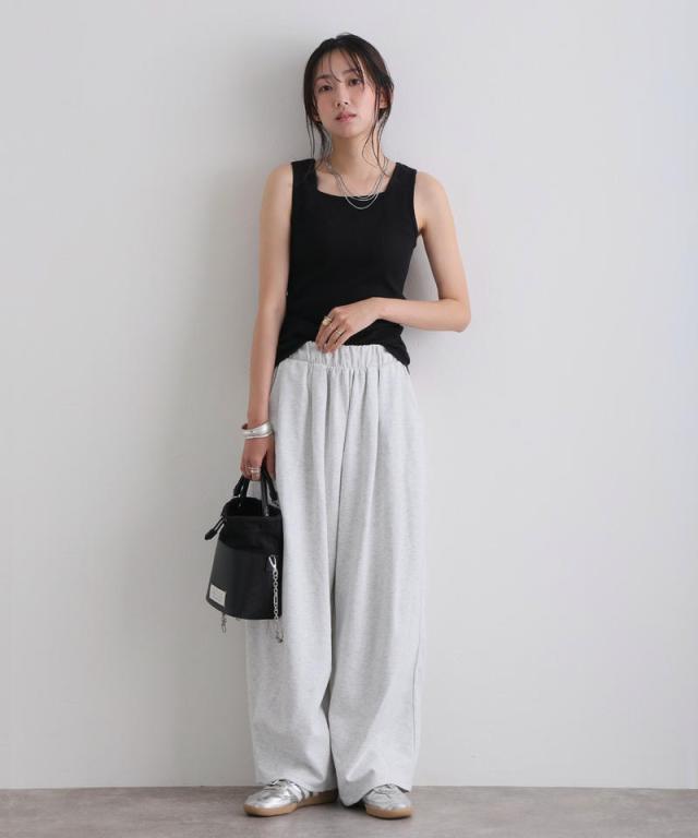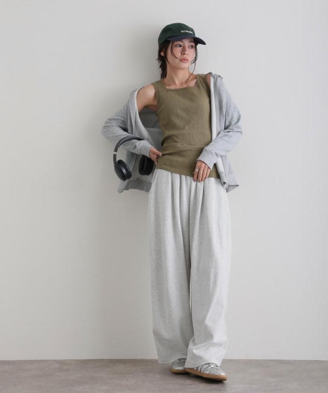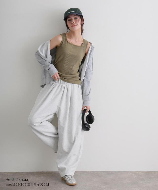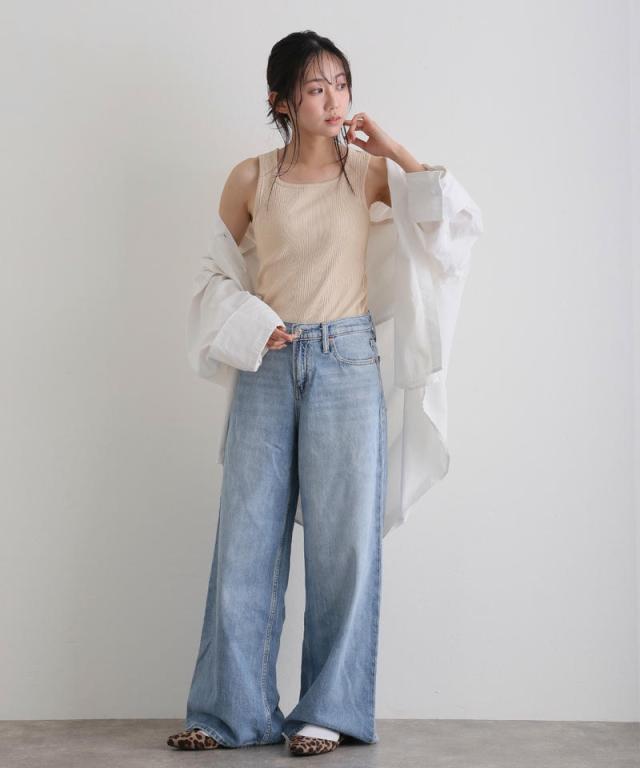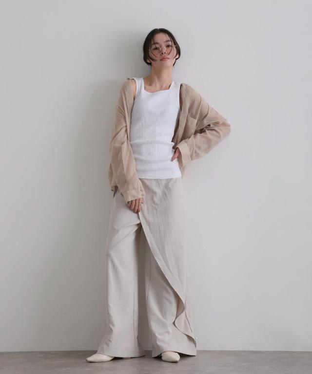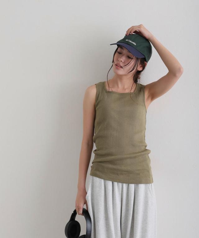 ★シアーシャツやカーディガンとのコーデに重宝するタンクトップ。