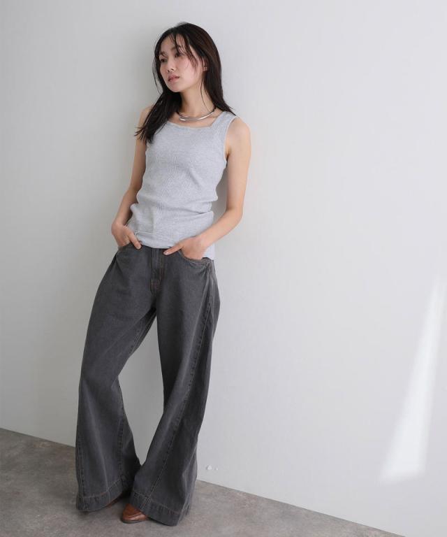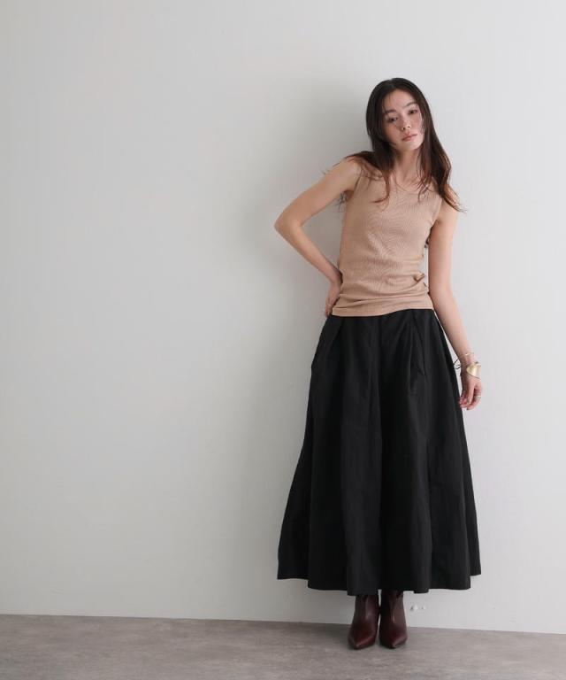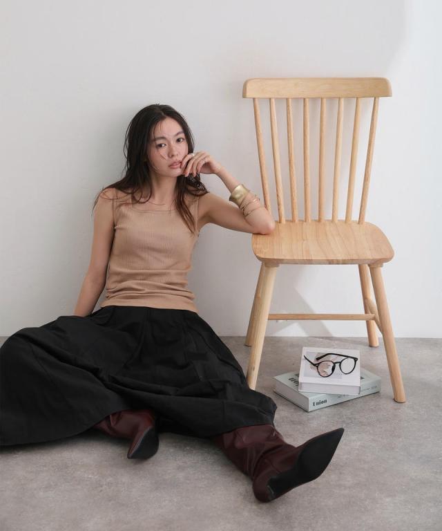 トレンドのスクエアネックで今っぽくスタイリングできます。