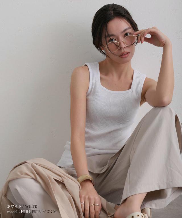 スクエアネックリブタンクトップ 【640211426】 20代・30代・40代・50代トップス・レディース・カジュアル・半袖・長袖・七分・ノースリーブ・肩出し・シンプル・薄手・厚手・無地・刺繍・可愛い・伸縮性・キレイめ・着やせ・重ね着風・新作・レース・上品・セットアップ・体型カバー・スタイルアップ・小さいサイズ・3Lや4L・・即日発送・送料無料・オフィス・ワーク・オールシーズン・デイリー・普段着・オケージョン・セミフォーマル・婚活・顔合わせ・同窓会・お呼ばれ・食事会・謝恩会・親族・七五三・お宮参り・冠婚葬祭・弔事・女子会・デート・入学式・卒業式・入園式・ママ