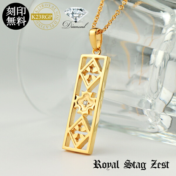 刻印無料 K23RGP 天然ダイヤモンド レリーフ プレート ネックレス ゴールドコーティング 23金 ネックレス 小さめ 十字架 ブランド Royal Stag ZEST ロイヤルスタッグ