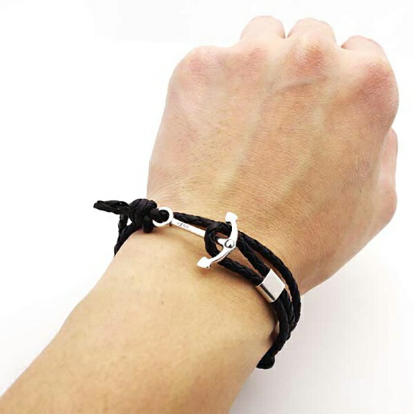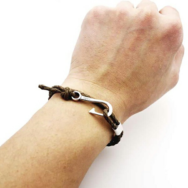 錨(アンカー)と釣り針(フィッシュフック)のシルバーパーツがレザーとの色合いに映えるデザインになっています。