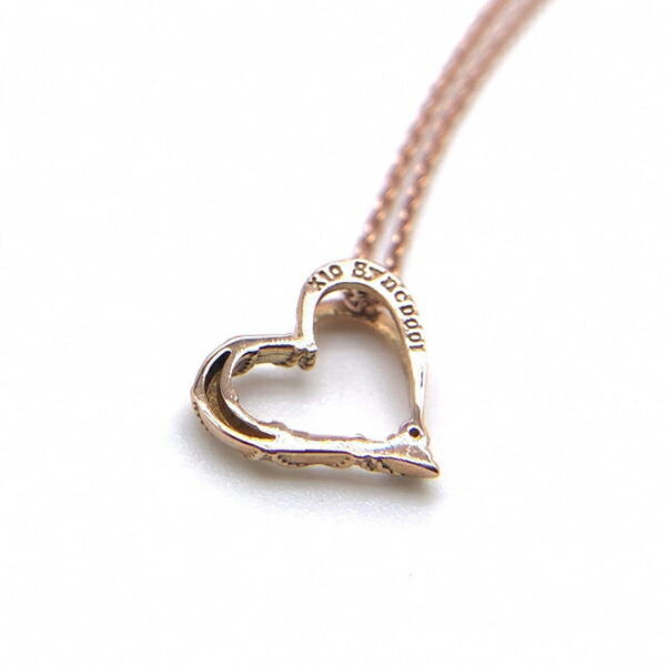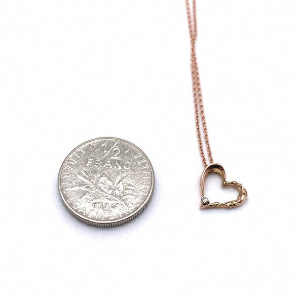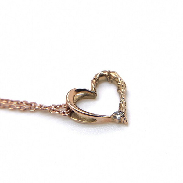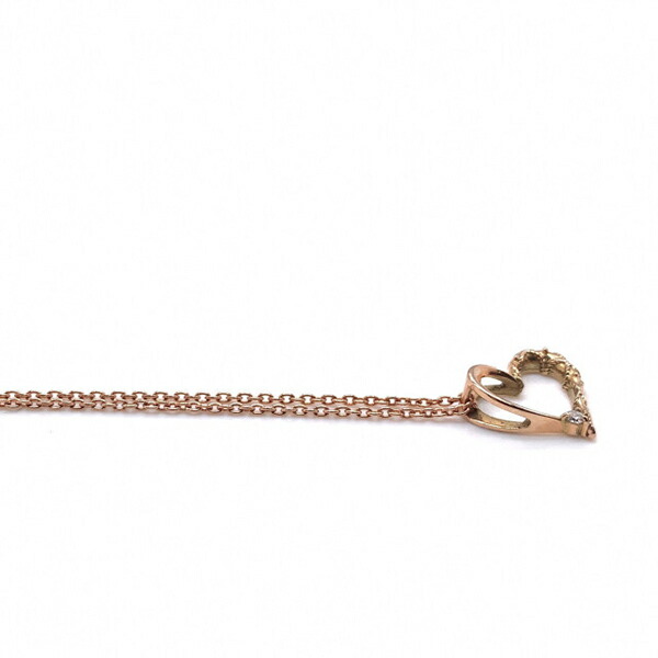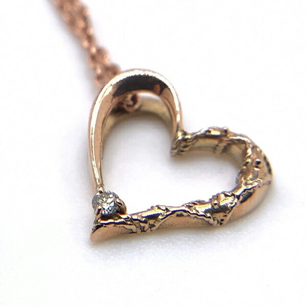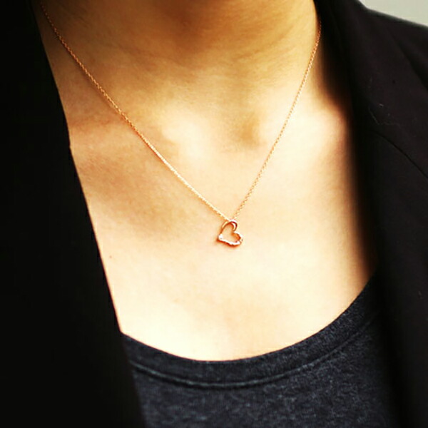 可憐な雰囲気のピンクゴールドのオープンハートにダイヤモンドをセッティングしたレディースネックレス。