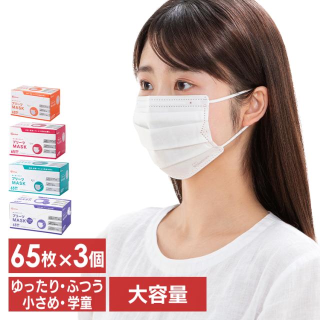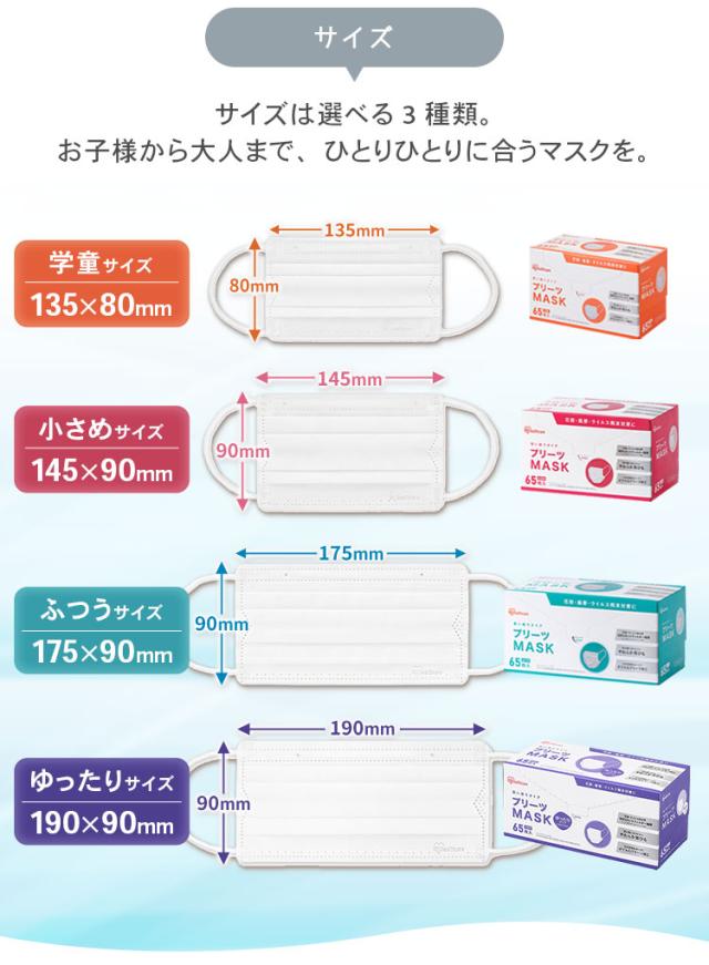 マスク 不織布 65枚入 3個セット プリーツ 不織布マスク プリーツマスク PN−NV65 全4サイズ 使い捨て 飛沫 ウイルス 感染 花粉 ほこり アイリスオーヤマ