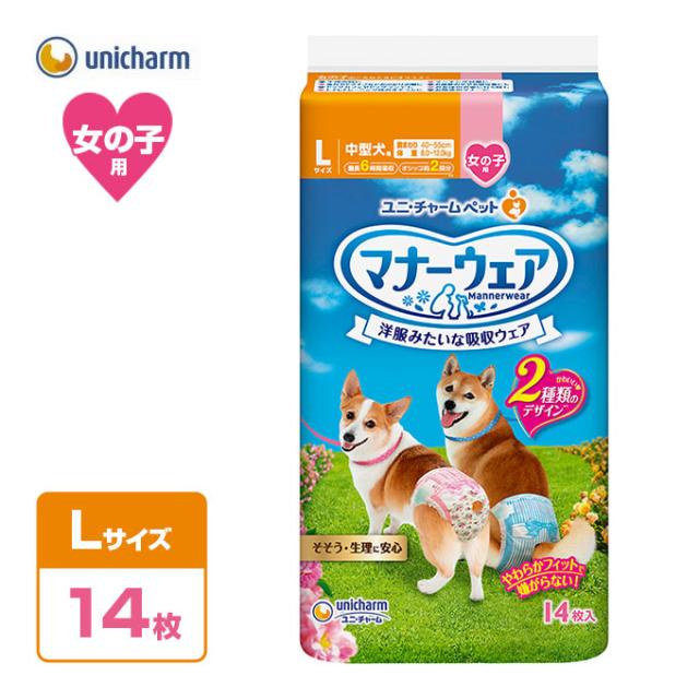 ユニ・チャーム マナーウェア 犬用 女の子用 L ピンクリボン・青リボン 14枚