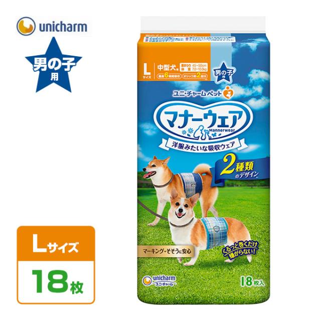 ユニ・チャーム マナーウェア 犬用 男の子用 L 青チェック・紺チェック 18枚