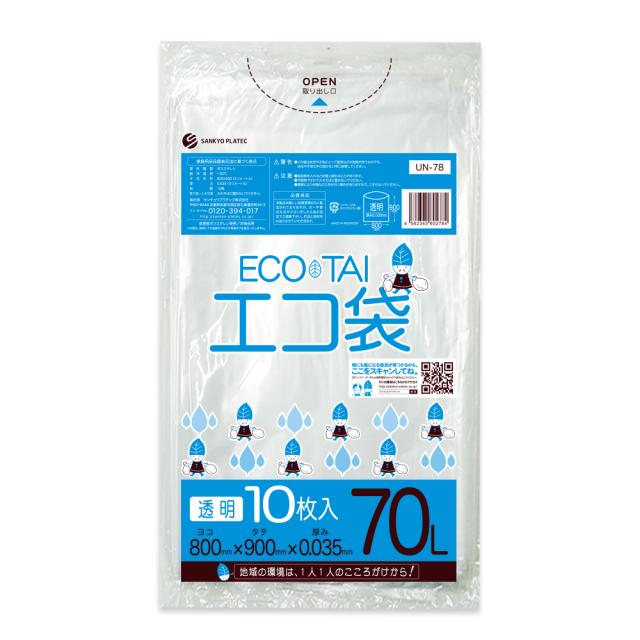 【バラ販売】UN-78bara ごみ袋 70リットル 0.035mm厚 透明 10枚 / ゴミ袋 ごみ袋