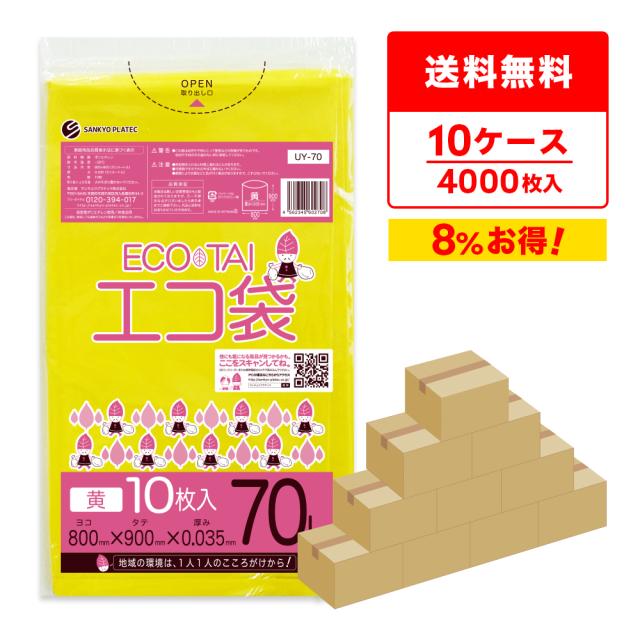 【まとめて10ケース】UY-70-10 ポリ袋 70リットル 0.035mm厚 黄色 10枚x40冊x10箱 / ゴミ袋 ごみ袋 送料無料