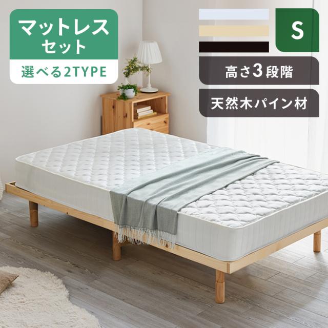 すのこベッド シングル マットレスセット ポケットコイル 厚さ20cm ベッドフレーム 高さ調節 3段階 耐荷重 約200kg 天然木 パイン材 すのこ ベッド 通気性 湿気対策 ヘッドレス 新生活 一人暮らし 1人暮らし ローベッド ベット マットレス DBB-3HS *