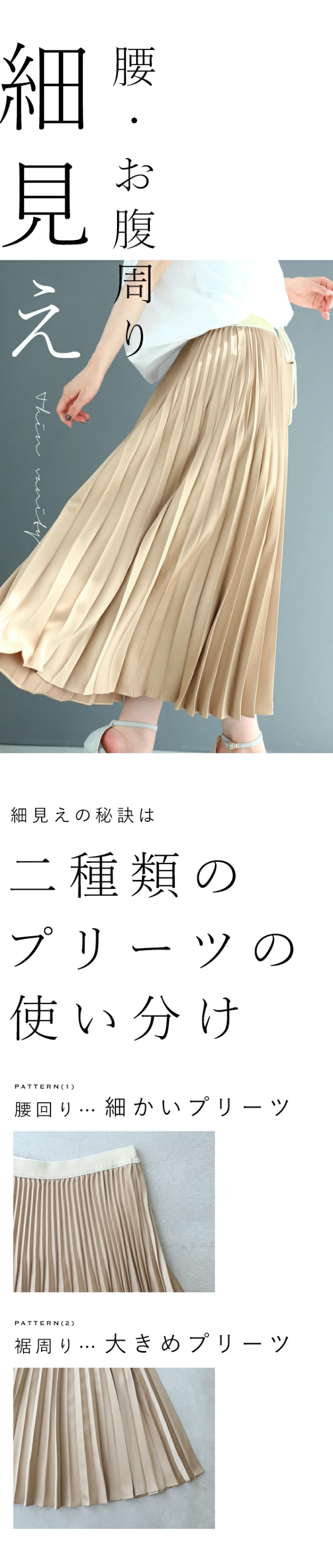 腰・お腹周りを細かい折り目でボリュームダウン。