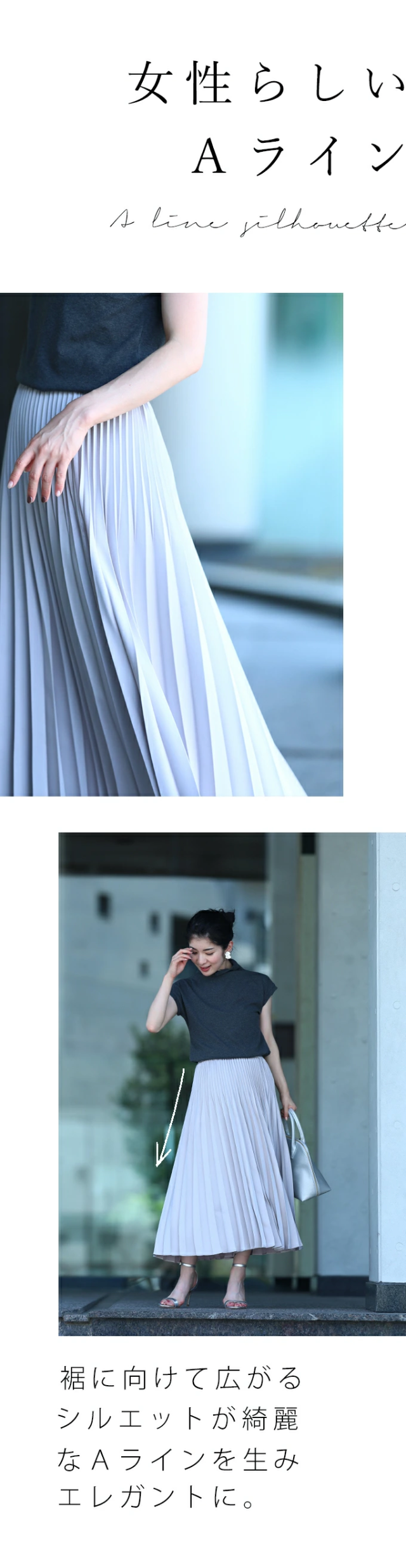 女性らしいAラインシルエットがエレガントに。