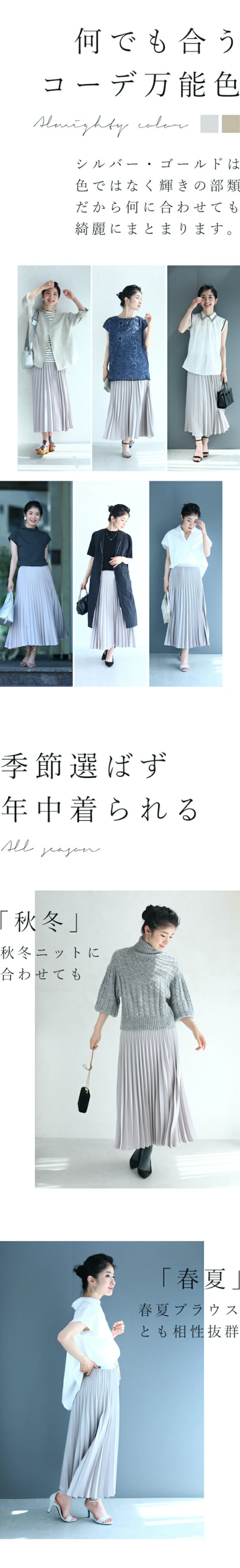 新作 新着 再入荷 CAWAII FRENCHPAVE フレンチパヴェ エレガント ベーシック カジュアル 可愛い かわいい カワイイ おしゃれ オシャレ お洒落 個性 個性的 定番 ベーシック 大人かわいい 大人可愛い 上品 女性らしい デザイン スタンダード ナチュラル きれいめ キレイめ シンプル フェミニン キラキラ プリーツ ボトムス スカート ロングスカート ロンスカ ロング丈 ロング S M L 2L LL XL 3L LLL XXL 小さめ 小さめサイズ小さい 小さいサイズ 低身長 痩せ ほっそり 小柄 細身 標準サイズ 大きめシルエット 大きい 大きめ ビッグシルエット ぽっちゃり 大きめサイズ 大きめ 大柄 大きい ビッグシルエット オーバーサイズ ゆったり 薄手 涼しい ずずしい 春 夏 秋 春服 春物 夏 夏服 夏物 シルバー 日常着 普段着 日常使い ヘビロテ 毎日着れる 無地 ワンカラー ワントーン オールシーズン