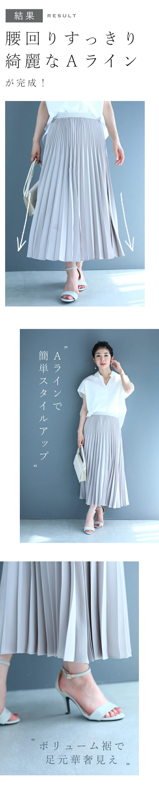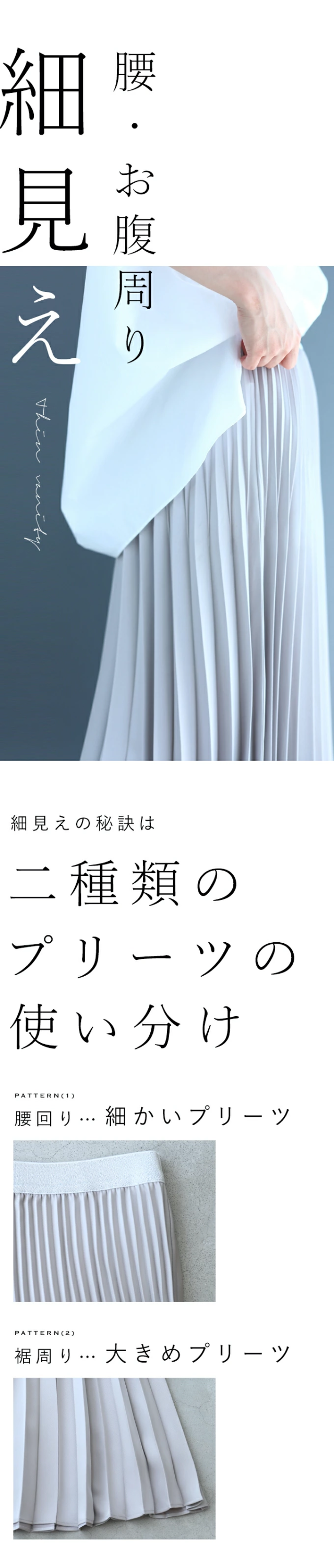 ■2段プリーツで腰回り細見え
