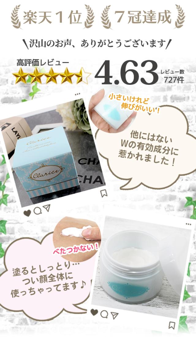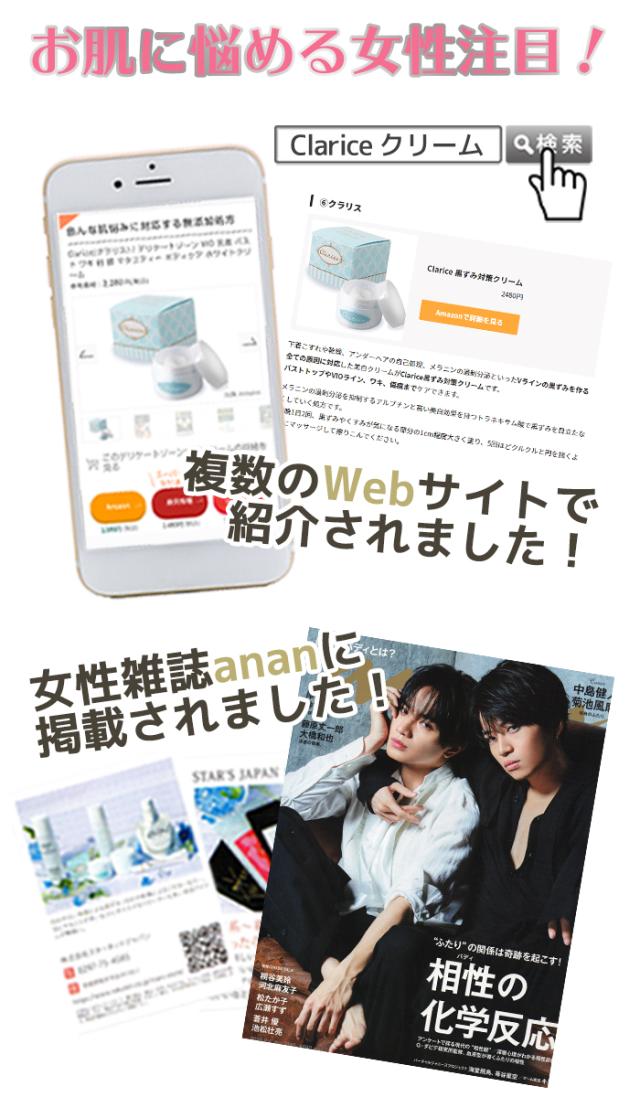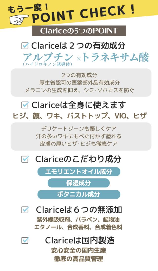 クラリスは塗るだけで簡単本格ケア!2つのW有効成分でくすみケア&保湿のWケアができます。そしてお肌にうれしい5つのボタニカル成分がぎゅっと濃縮配合されています。 |