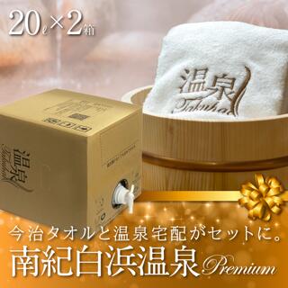 【温泉宅配プレミアム】【南紀白浜温泉 藤乃湯20L×2 最高級今治タオル付】古人が憧れた日本三大古湯(白浜・有馬・道後)の一つ、美肌の湯 南紀白浜温泉 藤乃湯。泉質と効用:ナトリウム—塩化物・炭酸水素塩泉。温泉法【浴用の適応症】慢性消化器病、慢性皮膚病