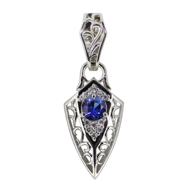 9月誕生石サファイアを使用したプラチナ製の、トライバル(唐草)デザインメンズペンダントヘッドです。