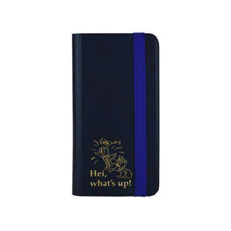 高級感のあるフェイクレザーに金色の箔押しがポイント!ゴム紐が付いているのでフリップの扉を固定できます。