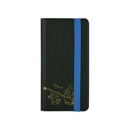 高級感のあるフェイクレザーに金色の箔押しがポイント!ゴム紐が付いているのでフリップの扉を固定できます。