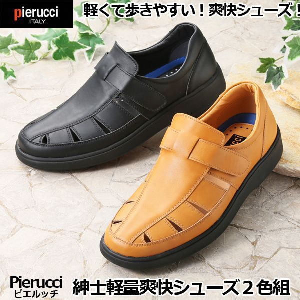 Pierucci(ピエルッチ)紳士軽量爽快シューズ2色組 (紳士靴 メンズ シューズ 幅広 4E 超軽量 面ファスナー敬老の日 )