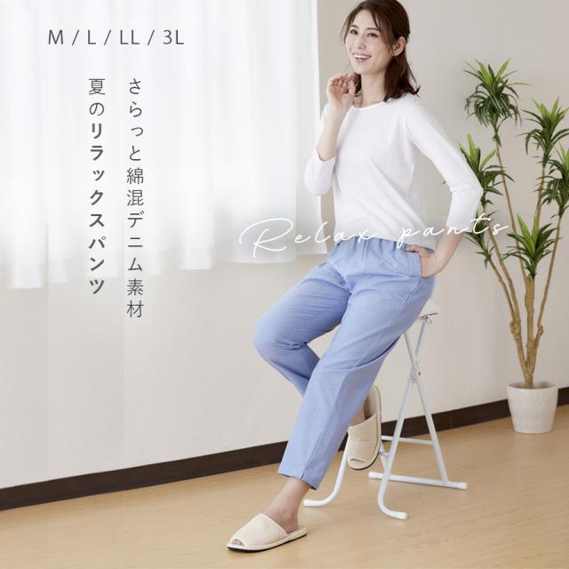 ルームパンツ レディース,ルームパンツ 部屋着,ルームパンツ 大きいサイズ,パンツ,ルームパンツ,ズボン,下,下だけ,下のみ,ズボンだけ,ズボンのみ,パジャマ,ルームウェア,ホームウェア,部屋着,ポケット付き,ポケット,涼しい,涼しげ,綿混,綿,コットン,春,夏,春夏,デニム,M,L,LL,3L,大きいサイズ,大きめ,ゆったり,ウエストゴム,総ゴム,ウエスト,ゴム,締め付けない,しめつけない,苦しくない,大人,レディース,女性,おしゃれ,お洒落,オシャレ,かわいい,可愛い,シンプル,カジュアル,着心地,ミセス,婦人,