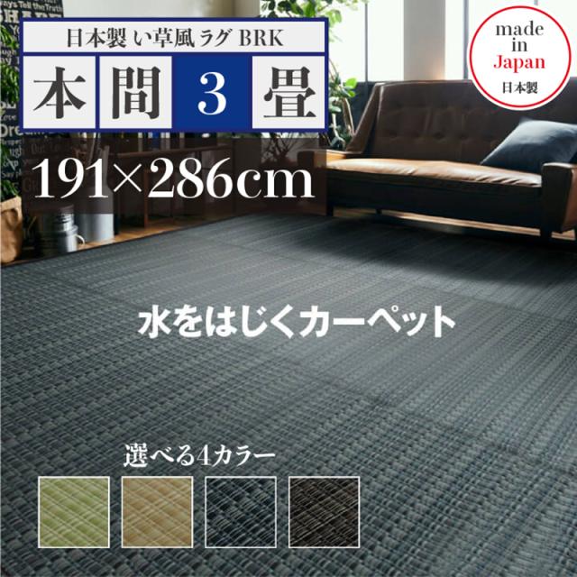 い草風ラグ BRK 本間3畳 幅191 奥行286cm グリーン ベージュ ブラウン ネイビー 畳風ラグ 夏 ラグ 洗える い草風カーペット イ草風 ラグマット 日本製 国産 軽量 傷防止 和モダン おしゃれ 絨毯 和室 和風 モダン 防ダニ ゴザ 寝ござ 寝ゴザ 夏用