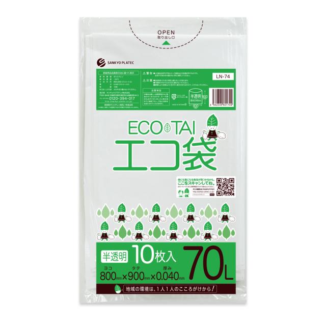 【バラ販売】LN-74bara ポリ袋 70リットル 0.040mm厚 半透明 10枚 / ゴミ袋 ごみ袋