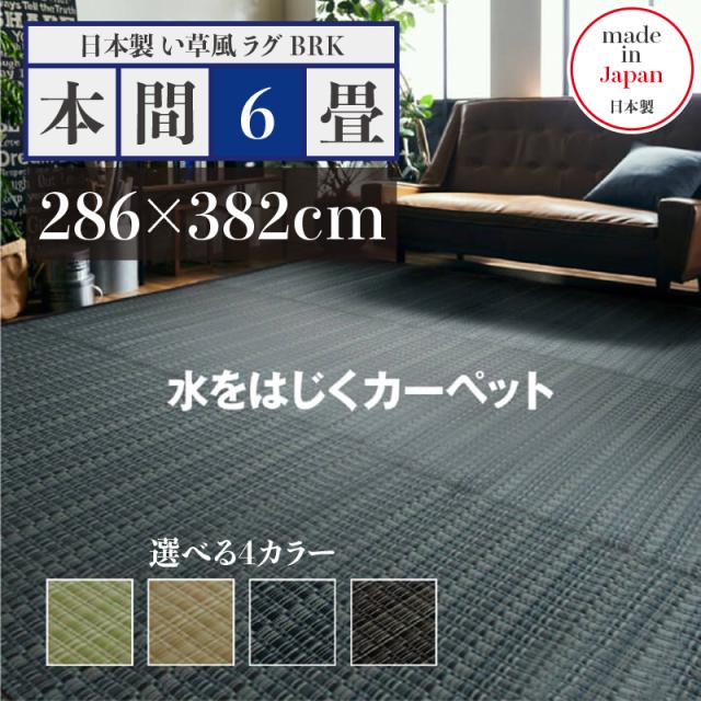 い草風ラグ BRK 本間6畳 幅286 奥行382cm グリーン ベージュ ブラウン ネイビー 畳風ラグ 夏 ラグ 洗える い草風カーペット イ草風 ラグマット 日本製 国産 軽量 傷防止 和モダン おしゃれ 絨毯 和室 和風 モダン 防ダニ ゴザ 寝ござ 寝ゴザ 夏用