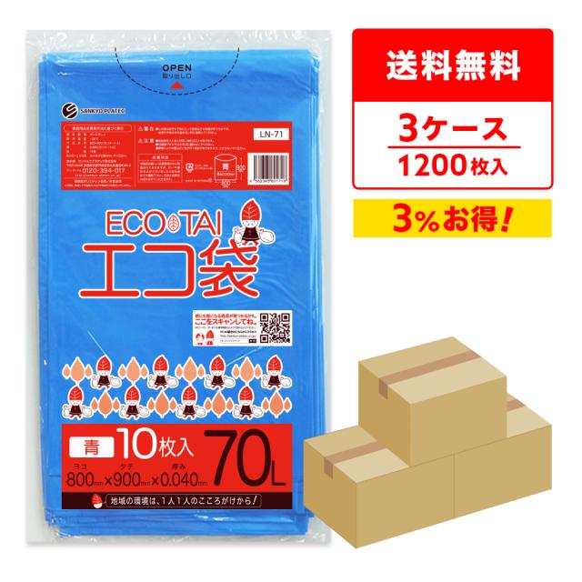 【まとめて3ケース】LN-71-3 ごみ袋 70リットル 0.040mm厚 青 10枚x40冊x3箱 / ゴミ袋 ごみ袋 送料無料