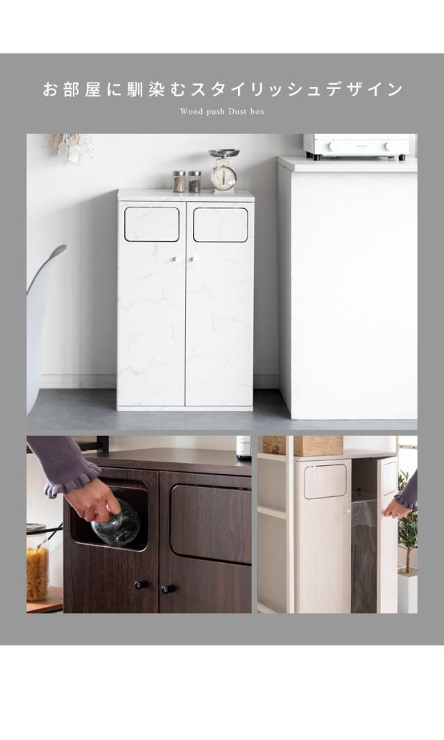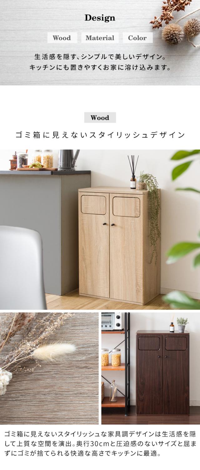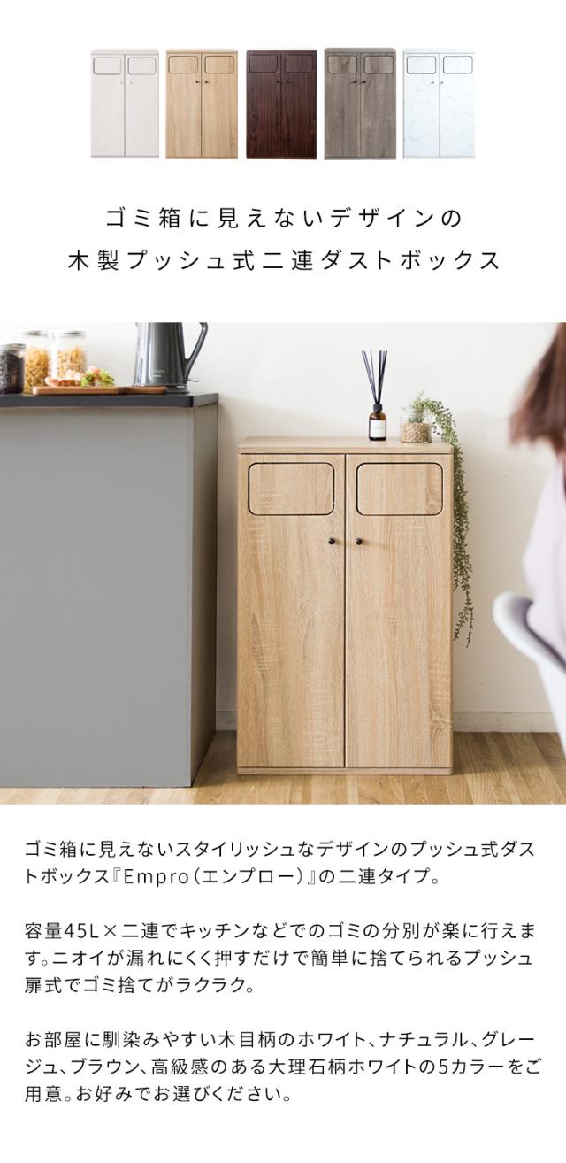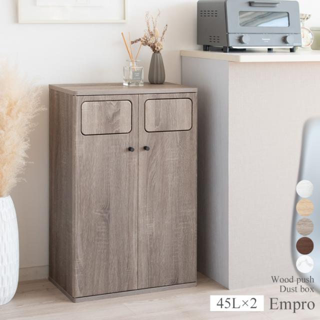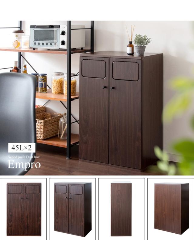 ウッドプッシュダストボックス Empro(エンプロー) DB-802R 45Lx2 5色対応 ゴミ箱 蓋付き スリム キッチン リビング 寝室 ベッドサイド フロントオープン 前開き 角型 ダストボックス 分別 ごみばこ 木製 コンパクト
