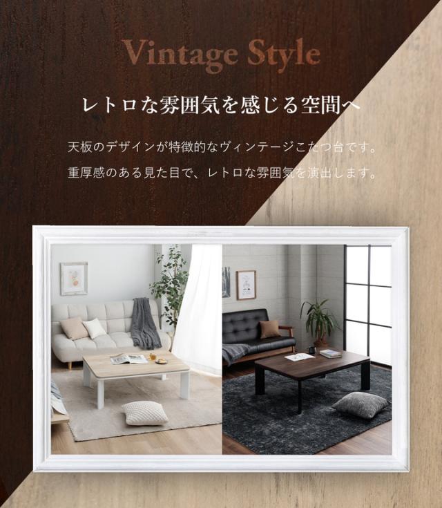 こたつ テーブル こたつテーブル 長方形 おしゃれ ローテーブル 大きめ 北欧 「 ヴィンテージ こたつ台 」 約80×120cm 一人暮らし デスク 机 黒 白 一人用 省エネ 大判 こたつ台 センターテーブル