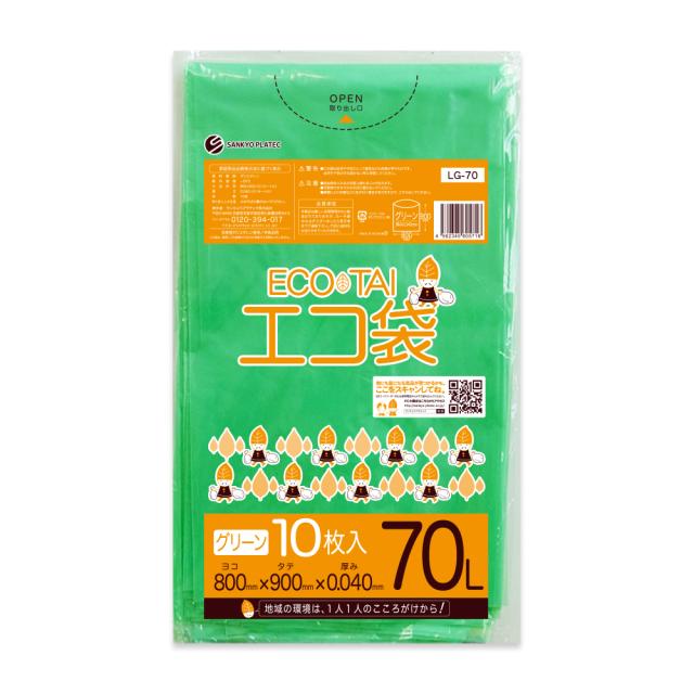 【バラ販売】LG-70bara ポリ袋 70リットル 0.040mm厚 グリーン 10枚 / ゴミ袋 ごみ袋